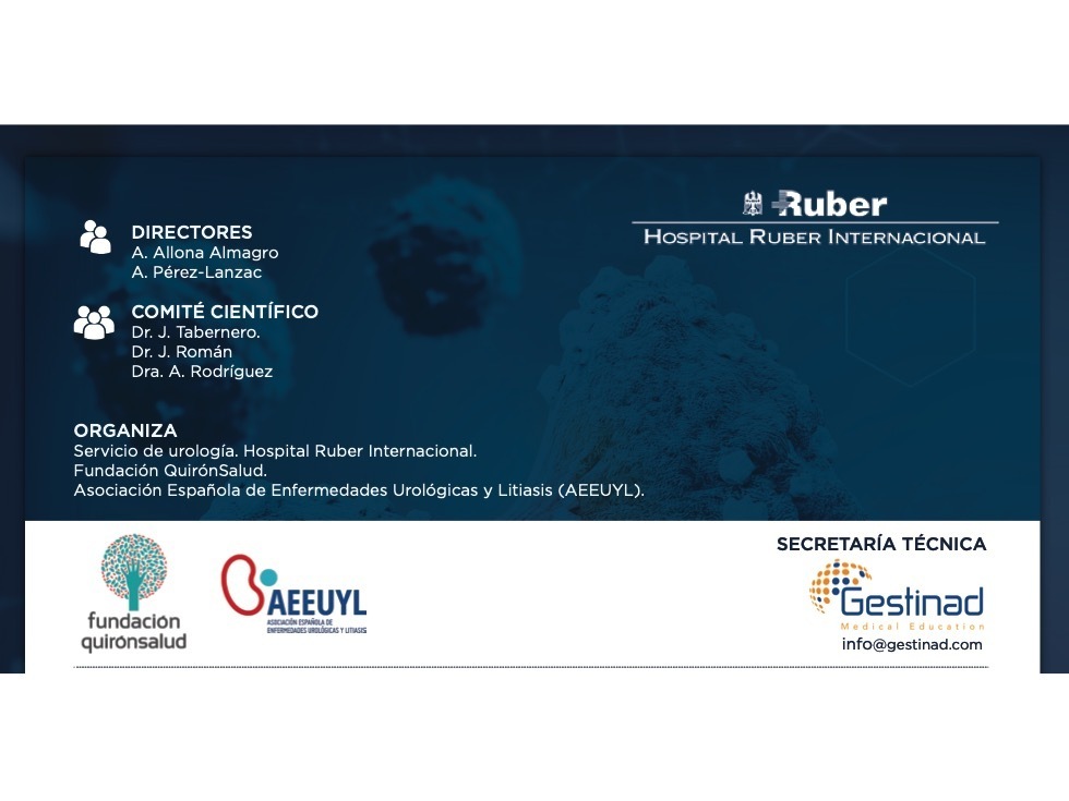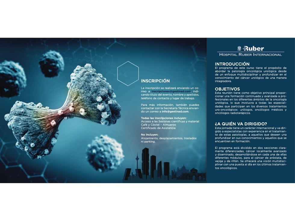 El Servicio de Urología y Andrología del Hospital Ruber Internacional organiza la I Reunión Multidisciplinar de Uro – Oncologia. Avances en Oncología. El curso de oncología tendrá lugar el 10 de Octubre. Una actualización de los últimos avances en el cáncer de próstata cáncer de vejiga y cáncer renal. #uroncoruber.Este curso de Uro – Oncología tiene un espíritu innovador ya que, por un lado reúne a tres especialidades (urólogos, oncólogos y radioterapéutas) y tiene un carácter internacional con ponentes de reconocido prestigio. Se organiza en el Grupo Quirón y sin duda, redundará en un beneficio para nuestros enfermos.Más información en: www.urooncologia.es